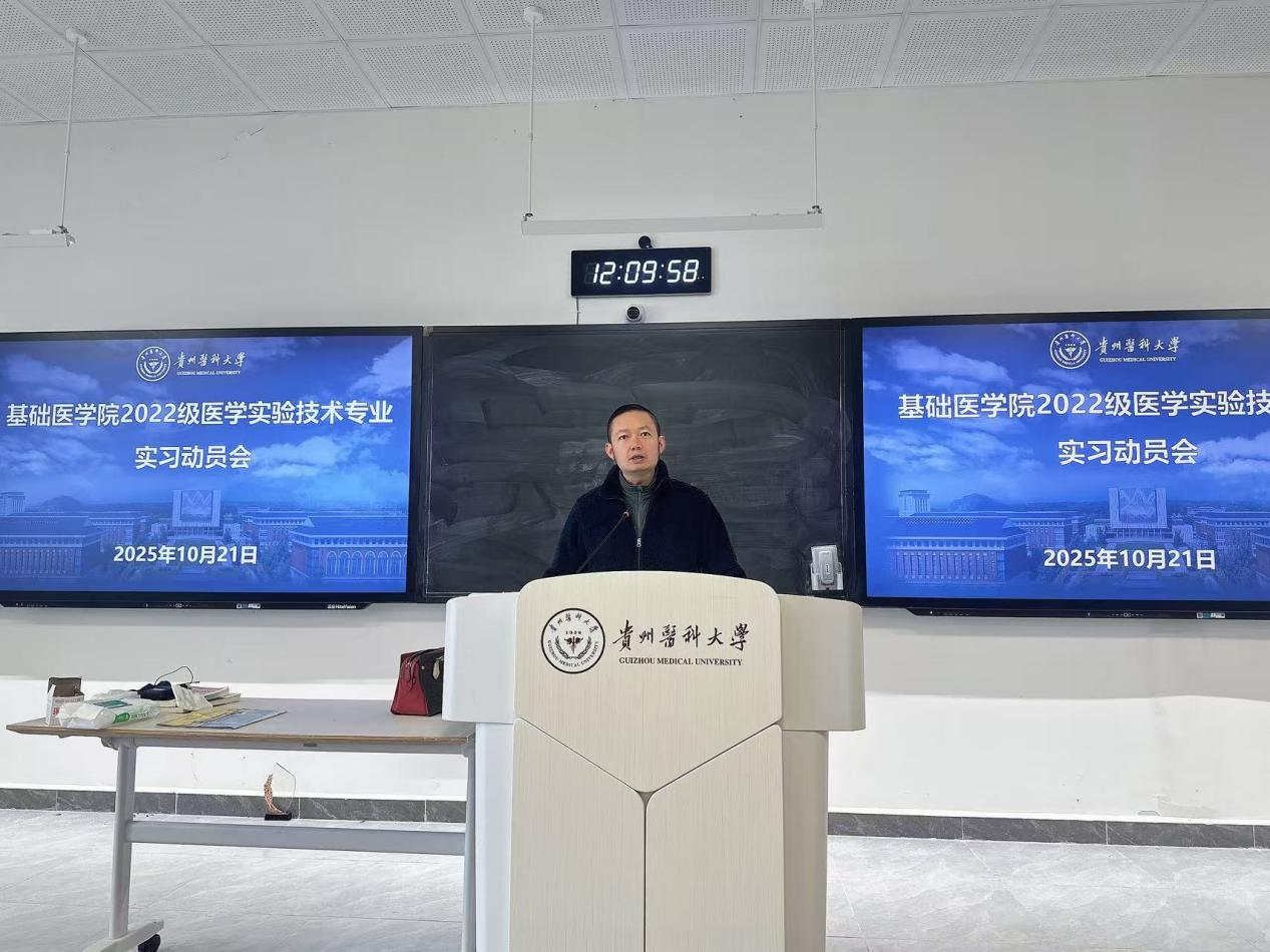 2025年10月21日,永利集团304官网在基础组团 R119 教室举行 2022 级医学实验实习动员会。永利集团304官网党委副书记孟立科、副院长徐红,永利集团304官网教管科老师、辅导员,2022 级医学实验实习全体同学参加本次动员会。孟立科重点强调实习纪律与人身安全。要求全体同学严格遵守实习单位考勤制度,杜绝迟到、早退、旷工,遵守单位纪律准则,规范着装、坚守职业形象,严禁泄露患者隐私与医院实验数据;绝对服从实习单位岗位分配、轮科安排等工...