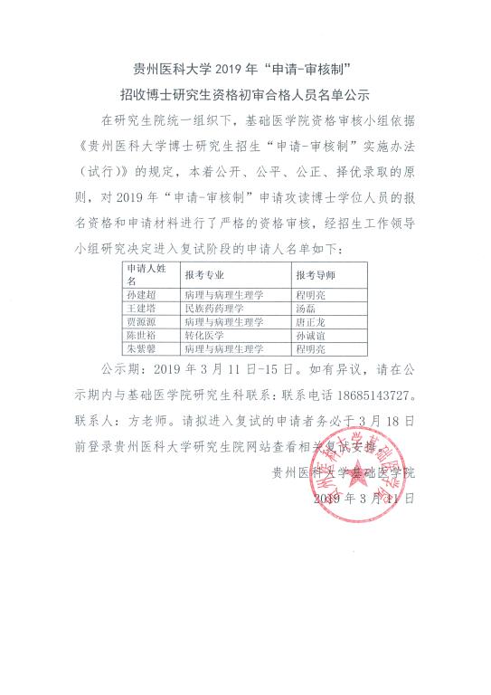 304永利登录入口2019年“申请-审核制”招收博士研究生资格初审合格人员名单公示